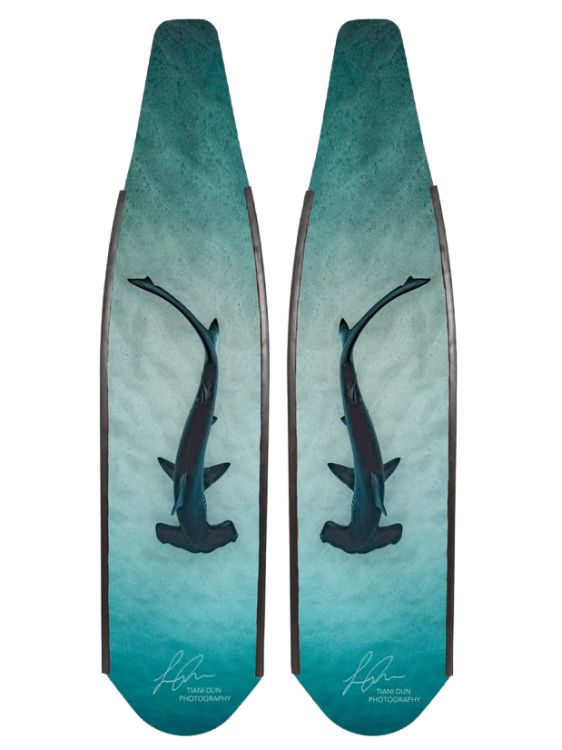 DiveR Hammer by Tiani Dun is a premium set of composite freediving and spearfishing fins, combining striking artwork with high-performance engineering. Featuring Tiani Dun’s bold, ocean-inspired “Hammer” design, these blades are crafted from advanced composite materials to deliver exceptional power transfer, efficiency, and durability. Perfect for both recreational and competitive divers, they offer a smooth, energy-saving kick cycle that reduces fatigue on long dives, all while showcasing a unique piece of underwater art.