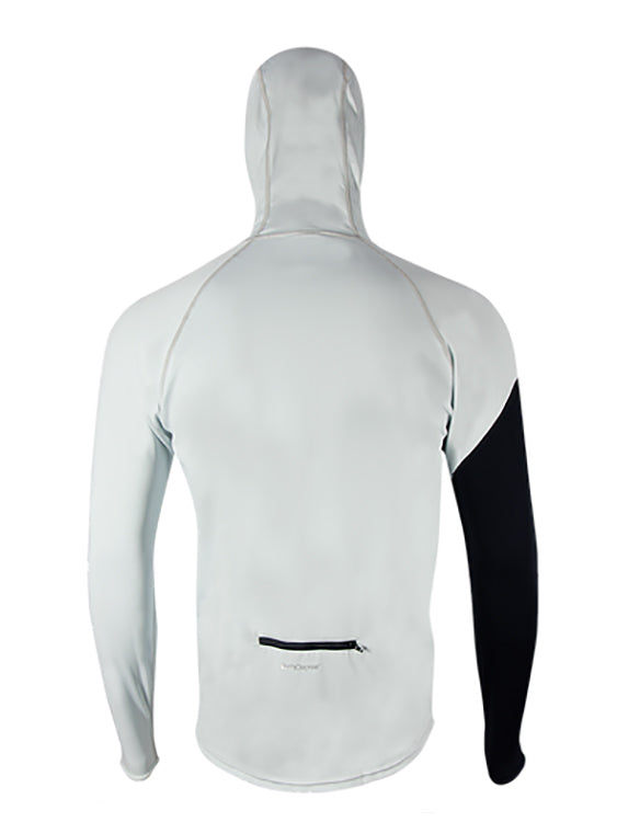 The water channel flow weave material that is used makes the Galcier super quick-drying. It is designed to fit loosely, so you have all the freedom of movement that you need. For extra utility, the hooded long sleeve top also has a zippered pocket in the back.
