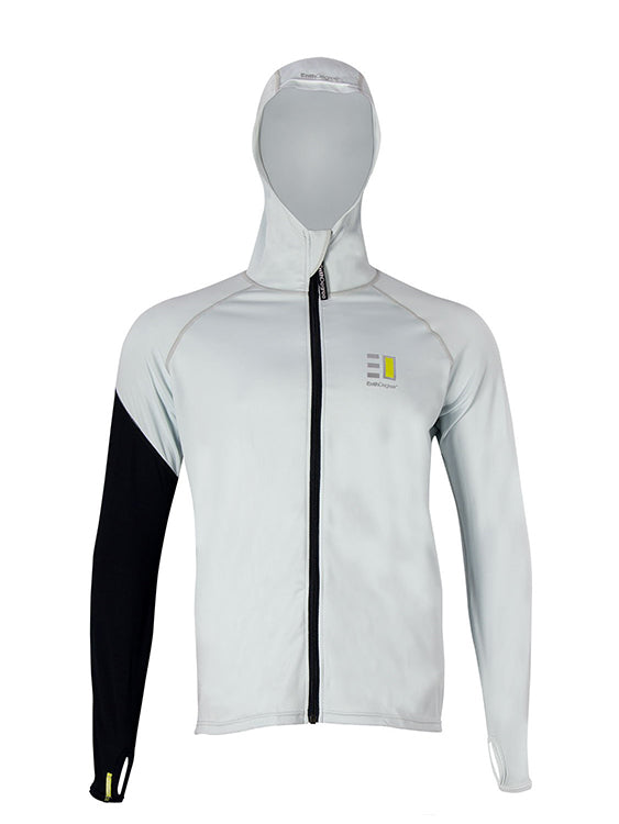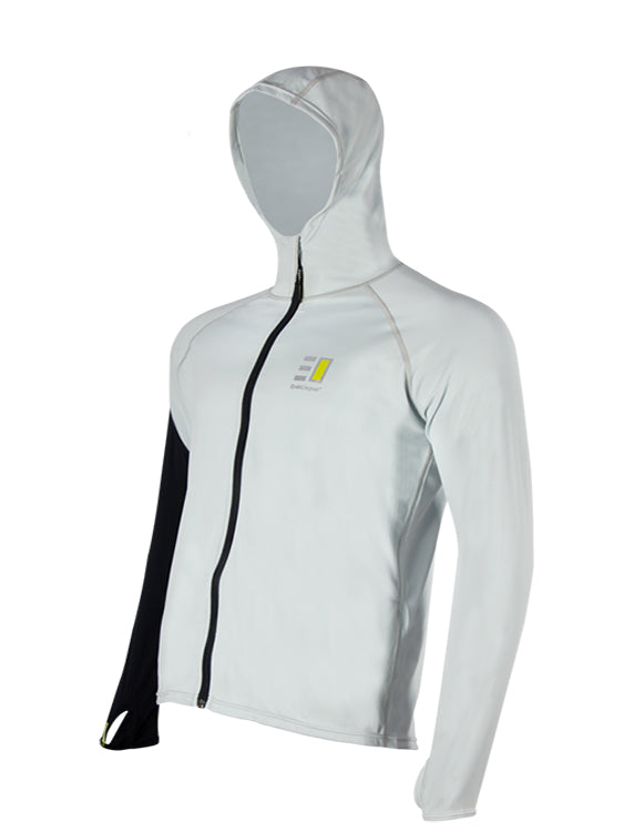 The Enth Degree Glacier is a hooded long sleeve top with a front zip. It is designed for on-water sports such as stand-up paddle boarding and kayaking with maximum sun protection UV 50+.
