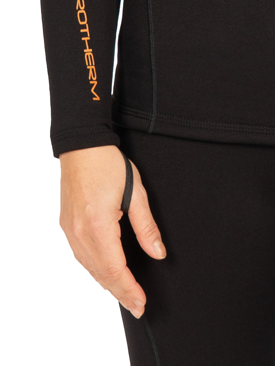 The long sleeve top has thumb loops to ensure the ease of donning your drysuit, these need to be pushed back inside the seals of your suit to prevent leakages. Stitched with flat seams for comfort and a long body to help prevent separation between the top and leggings.