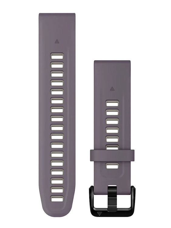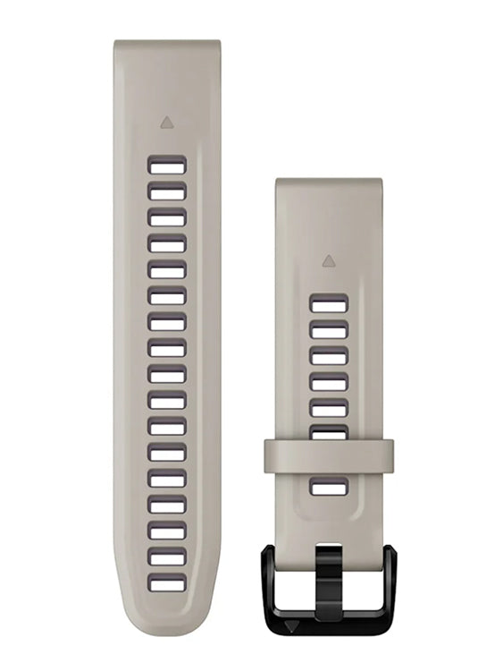 Switching your watch band is easy, no tools are needed, and it's always secure. The Garmin QuckFit 20 in Silicone Two Tone comes in: Black/Electric Lime, Flame Red/Graphite, Light Sand/Deep Orchid, Deep Orchid/Light Sand and Whitestone/Aqua.
