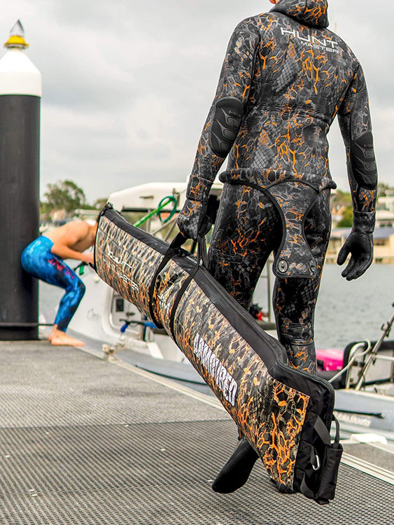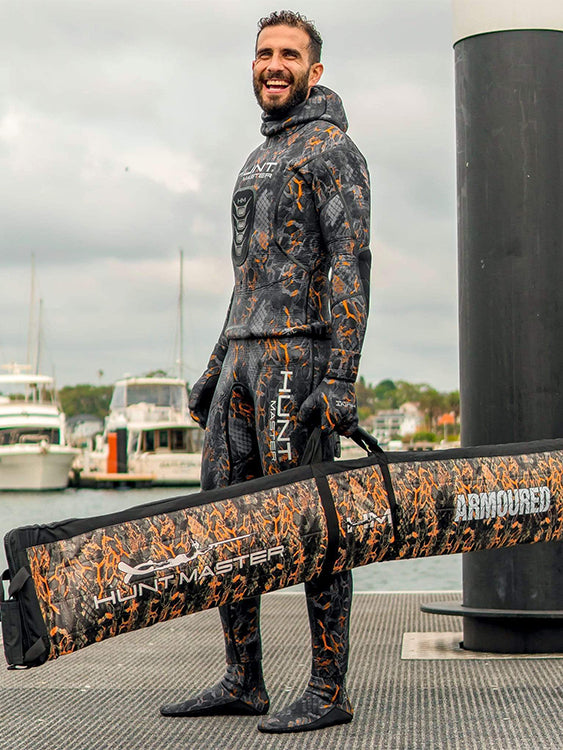 Huntmaster invented the world-first Armoured Speargun Bag, ideal for air travel and long distance overseas trips as it helps you to protect your speargun and your other precious spearfishing gears by careless baggage handlers or safe from thieves.