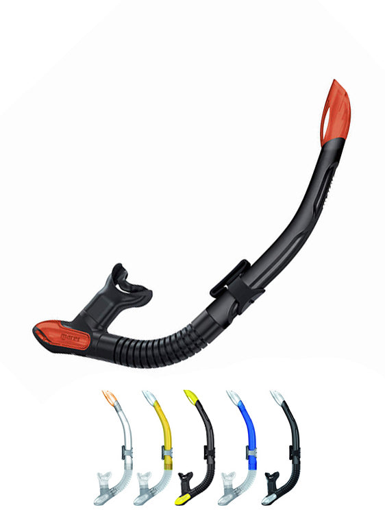 The Mares Ergo Splash Snorkel makes snorkelling even better with its splash protection at the top to help reduce ingress of water. The bottom of the tube is clear and flexible making it comfortable, helped as well by the soft silicone mouthpiece and easy to clear drain valve at the bottom.