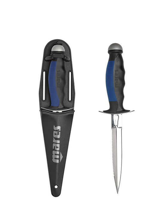 The Mares Snake 2.1 spearfishing knife is a 135mm long stainless steel blade with a micro-serrated cutting edge. Paired with a soft, ergonomic non-slip handle and equipt with a hole within the length of the blade for freeing spearfishing rods stuck in cracks and crevices.