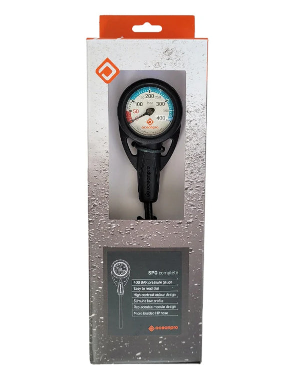 The Ocean Pro SPG is a slimline design to reduce bulk on your regulator set. It comes with a micro-braided high pressure (HP) hose that flexible and light weight making this SPG a great option for the travelling diver!