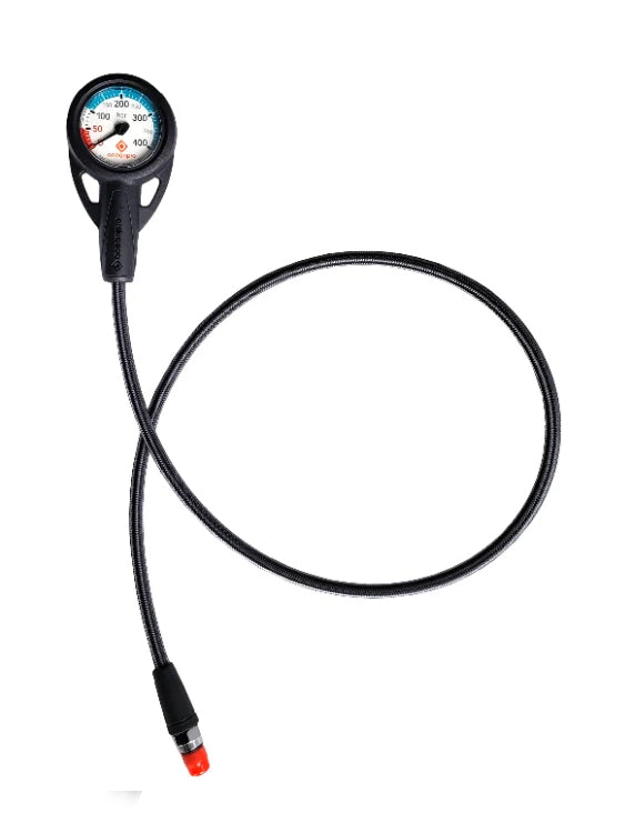 This compact design pressure gauge is an absolute must, can be used alone as a pressure gauge or as a back up for divers using air integration.