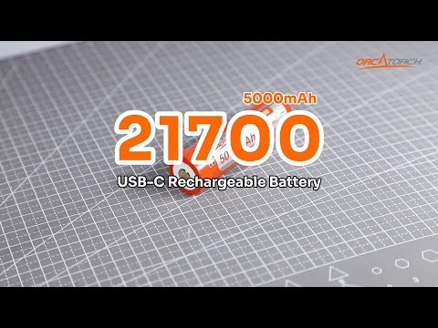 The Orcatorch 21700 Li-Ion Battery is a USB-C Rechargeable Battery that is common in many of the Orcatorch and other dive torches. To charge, simply plug in the USB-C cord and a small LED will show red while charging and will turn green once fully charged. The charging time is approximately 4 hours and 30 minutes.