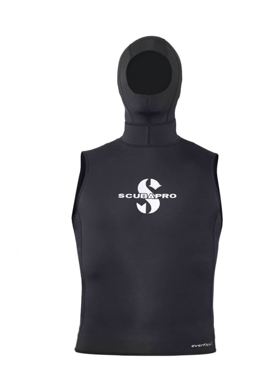 The Scubapro Everflex 2mm Hooded Vest is an ideal underlayer in cold water environments or as a stand alone exposure protection garment. The attached hood creates a better fitting and more comfortable one piece, covering the diver or snorkeler from sun rays and keeping vital heat in, especially on long water days. The 2mm vest is perfect thickness for extra thermal protection underneath a full wetsuit. This vest is extremely durable and flexible as it's produced from Everflex, one of Scubapro's best materials currently on the market.