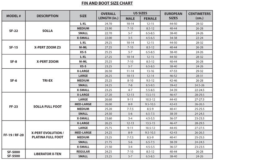 The Tusa Solla Fin is powered by ForcElast technology which offers unparalleled performance and efficiency previously unseen in a traditional blade fin. In addition to ForcElast technology, the Solla features TUSA’s patented 20° Angled Blade Design (A.B.D.), an optimized three channel crescent shaped blade with reinforced side-rails and vents, a multi-compound anatomic foot pocket and TUSA’s Anatomic Fin Strap (A.F.S.) and EZ buckle system